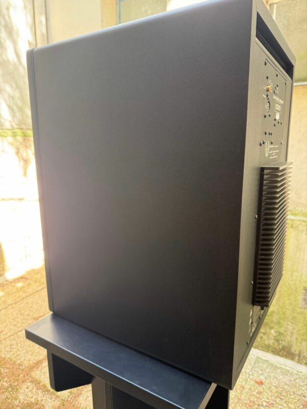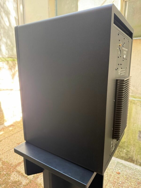 Hébergeant le moteur médium et notre tweeter AMT RS6, le module argenté au milieu de l’enceinte peut pivoter à 90° pour permettre le positionnement vertical et horizontal en fonction de l’agencement et de l’acoustique de votre studio.